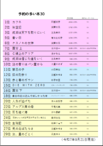 横浜市立図書館の予約が多い図書ランキング30にランクインしている本が地区センターでも借りられます!