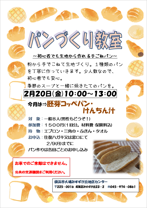 往復はがきまたは申込書と返信はがきを添えて窓口にて 2月9日(月)〆切