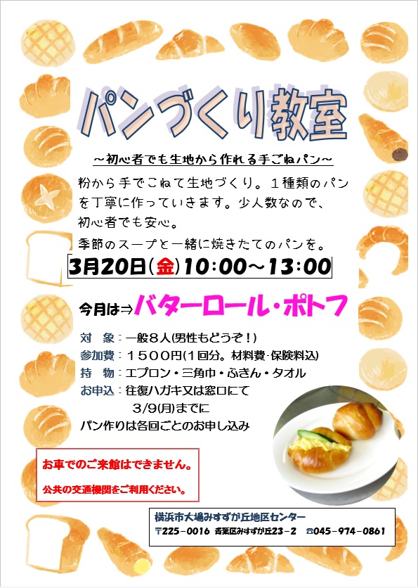 往復はがきまたは申込書と返信はがきを添えて窓口にて 3月9日(月)〆切
